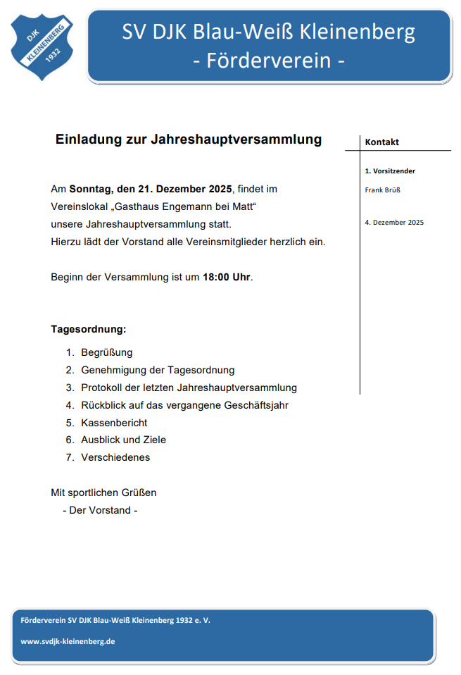 Einladung zur JHV des Fördervereins