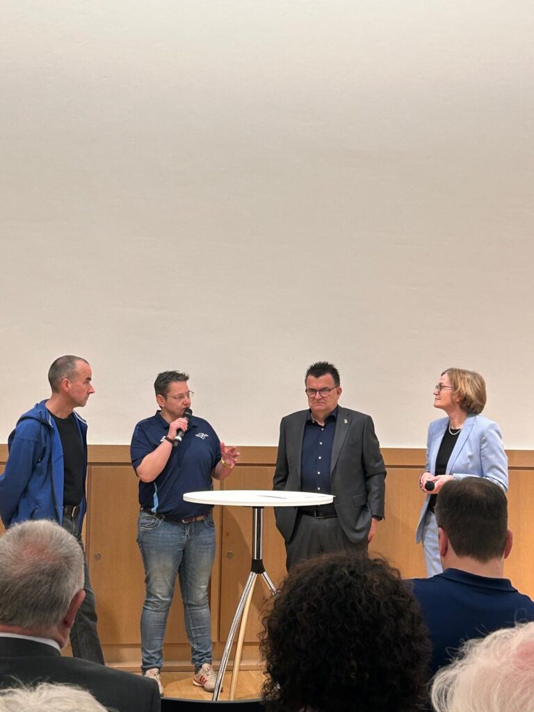 Nun wurde diese feierlich eröffnet und besonders schön war, dass ein Großteil der Anwesenden aus den blau-weißen Reihen kamen und die DJK somit stark vertraten. Dabei zeigte sich, dass Amateurverein und Profiklub mit ihren Motiven gar nicht so unterschiedlich sind. „Wir haben dieselbe Basis, agieren mit denselben Werten und haben oft gleiche Ideen“, betonte Martin Hornberger bei der Talkrunde zu Beginn des Events. „Zumal wir eine gemeinsame Geschichte haben, als wir 2022 beide in Düsseldorf für unser nachhaltiges Engagement geehrt wurde.“